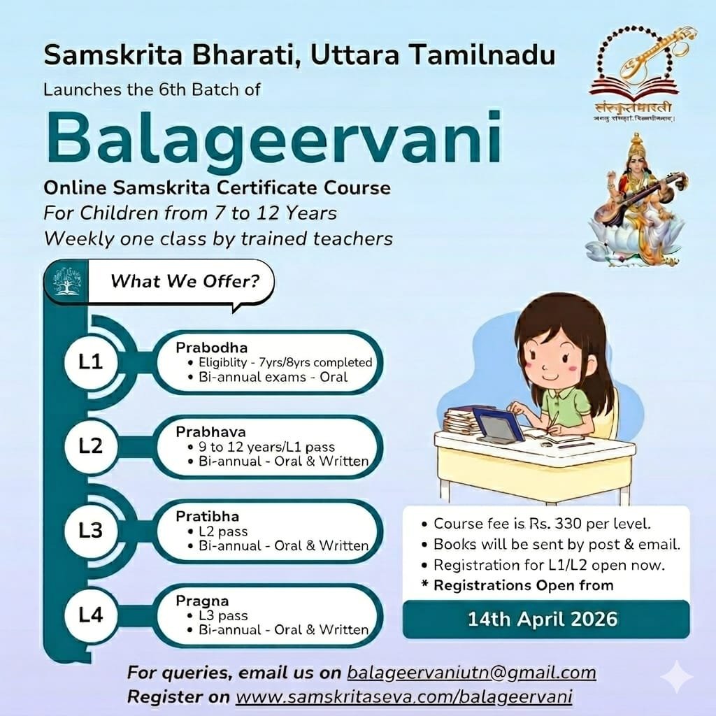 Welcome to Samskrita Bharati's courses module, a unique teaching methodology where Samskrit is taught in Samskrit and not thro other languages.